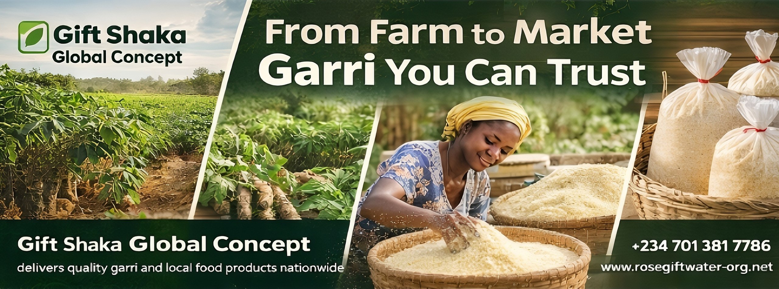 Your trusted source for the freshest, locally-sourced garri based produce. Quality and sustainability at your fingertips at any where in the world